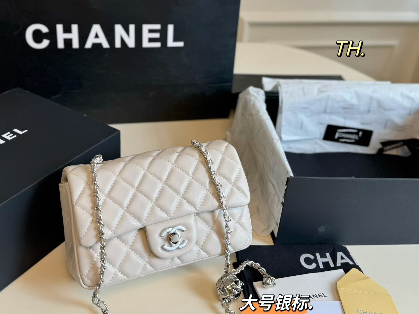 Chanel P125 size 19 13 Large Bag. Material: Calfskin. Hardware: Gold-tone hardware. Pattern: Monogram. Style: Top handle, Crossbody, Shoulder, Backpack, Clutch, Tote, Bucket. Color: Black. Condition: Brand new. Includes: Box, Shoulder strap. Size: 1.9 x 1.1 x 0.2 cm.