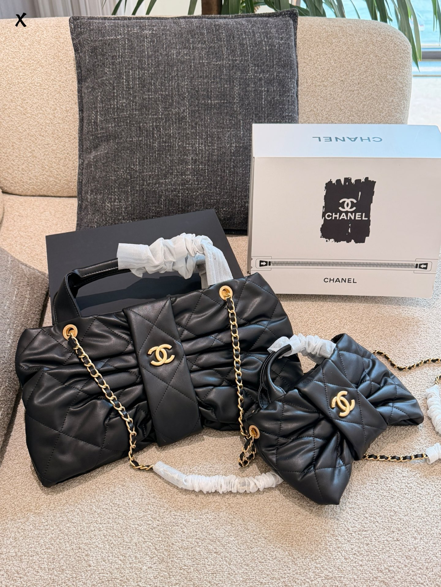 Chanel p150p160 x26x5cm OK 2025 Small Bag. Material: Lambskin. Pattern: Check pattern. Style: Top handle, Crossbody. Color: Black. Includes: Shoulder strap. Size: 18 x 26 x 5 cm.