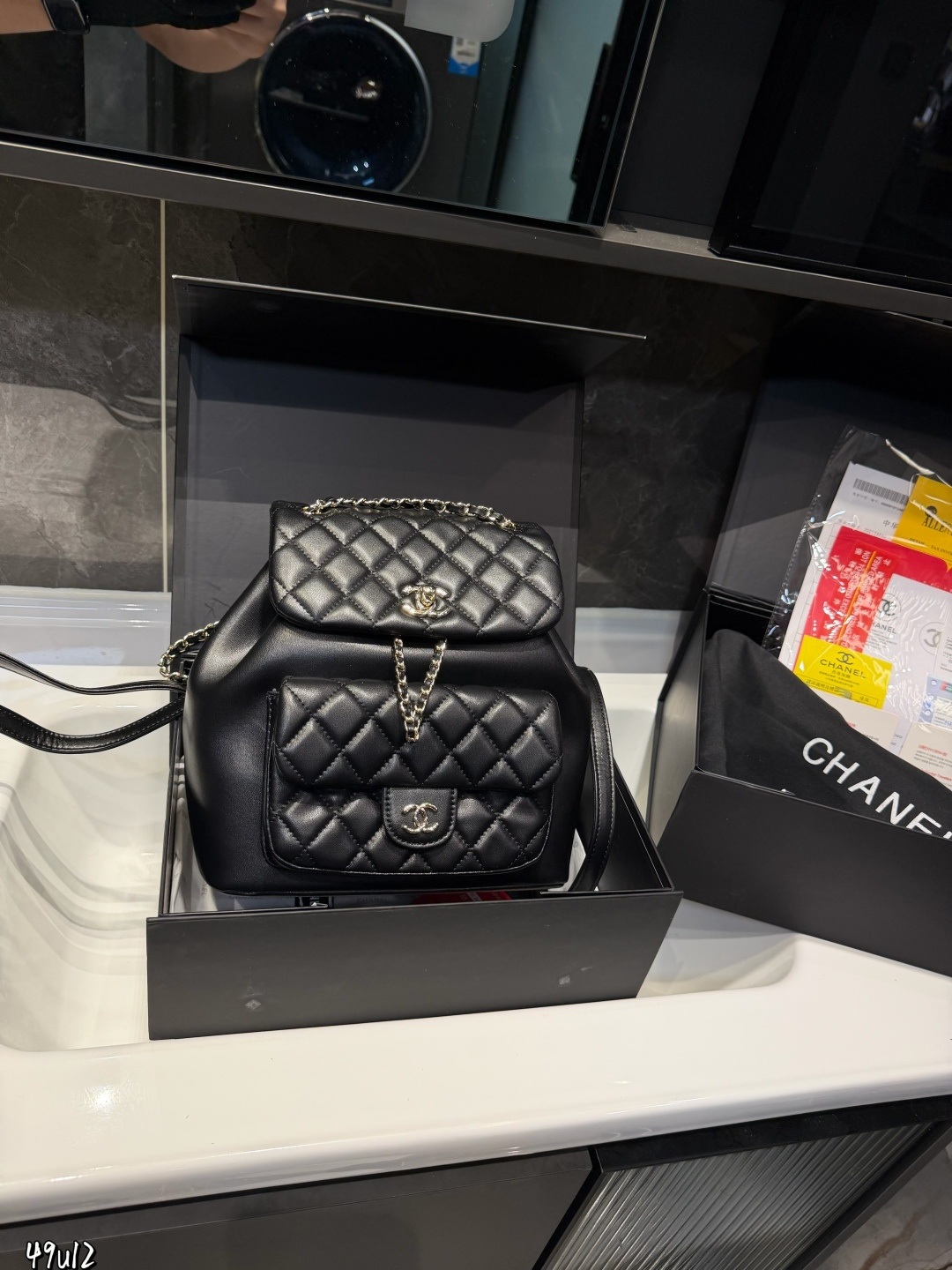 Chanel p180 duma size 22 Backpack. Material: Lambskin. Hardware: Gold-tone hardware. Style: Top handle, Shoulder, Backpack. Includes: Box. Size: 22 x 20 cm.