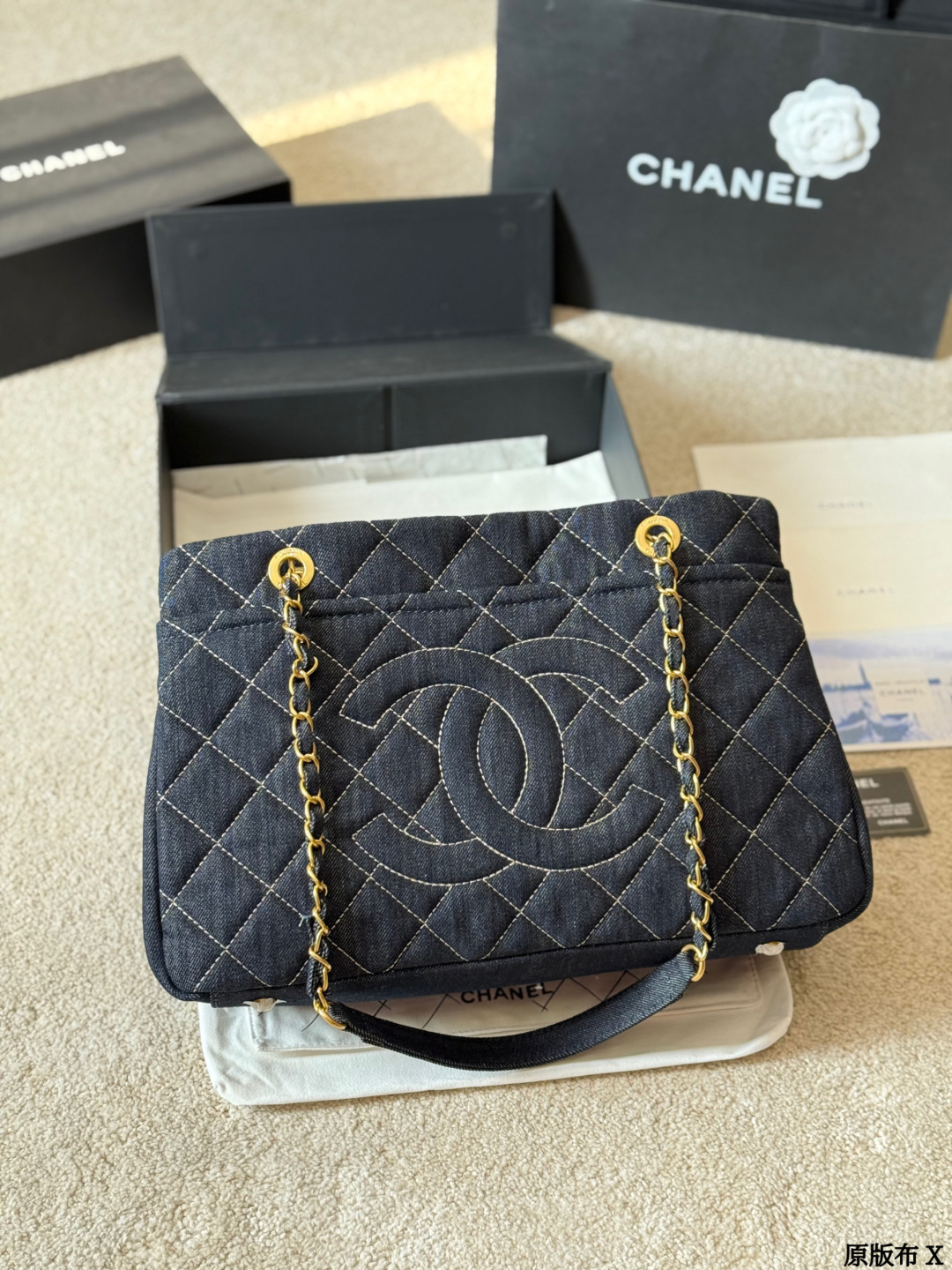 Chanel p215 GST CLogo x25x14cm Tote Bag. Material: Denim. Pattern: Check pattern. Style: Top handle, Tote. Includes: Shoulder strap. Size: 38 x 25 x 14 cm.