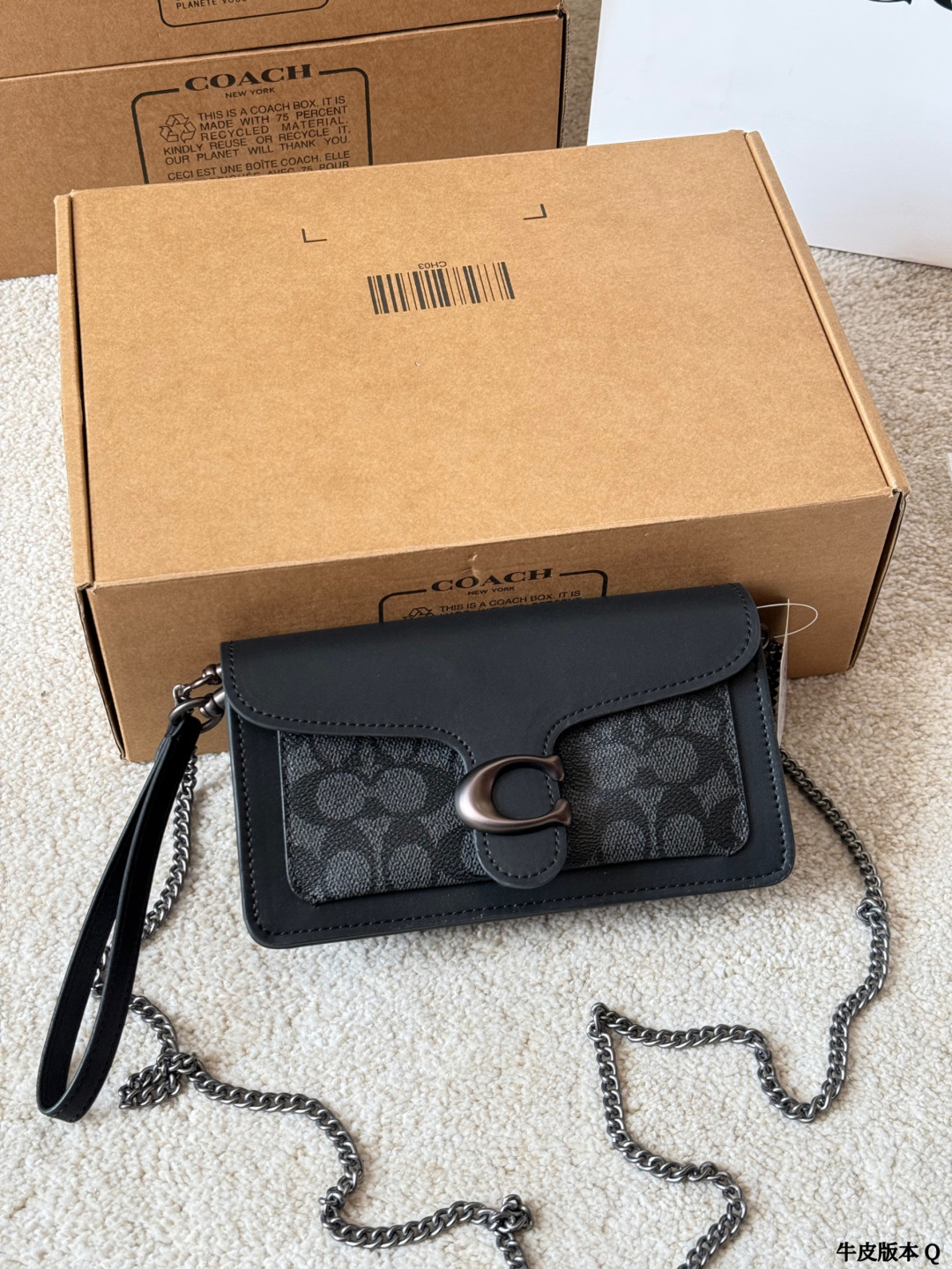 Coach p145 Tabby Wristlet mini 20 Mini Bag. Material: Calfskin. Hardware: Gold-tone hardware. Pattern: Monogram. Style: Top handle, Crossbody, Shoulder, Backpack, Clutch, Tote, Bucket. Color: Black. Condition: Brand new. Includes: Box, Shoulder strap. Size: 1.9 x 1.1 x 0.2 cm.