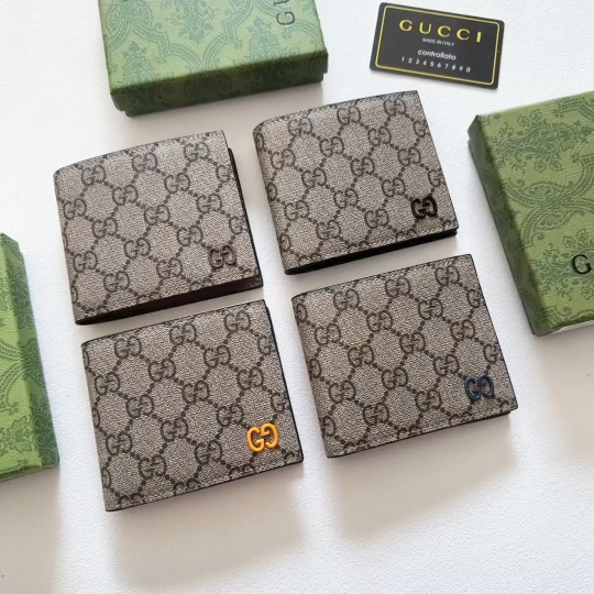 A refined bifold wallet crafted in Gucci’s iconic GG Supreme canvas with contrasting leather trim. Features the signature interlocking GG logo detail, offering timeless Italian luxury in a compact, functional design.