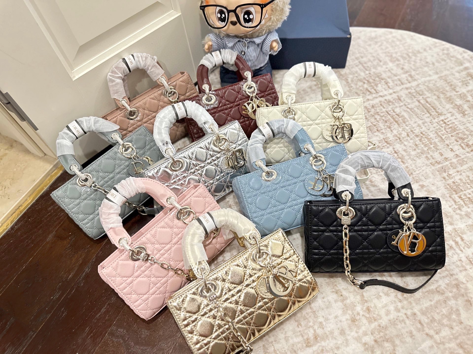 The iconic Lady Dior handbag features the signature Cannage quilted pattern with chain-link handles and the distinctive ‘D.I.O.R’ charm. A timeless symbol of elegance and sophistication, available in a stunning array of colors from soft pastels to classic black.