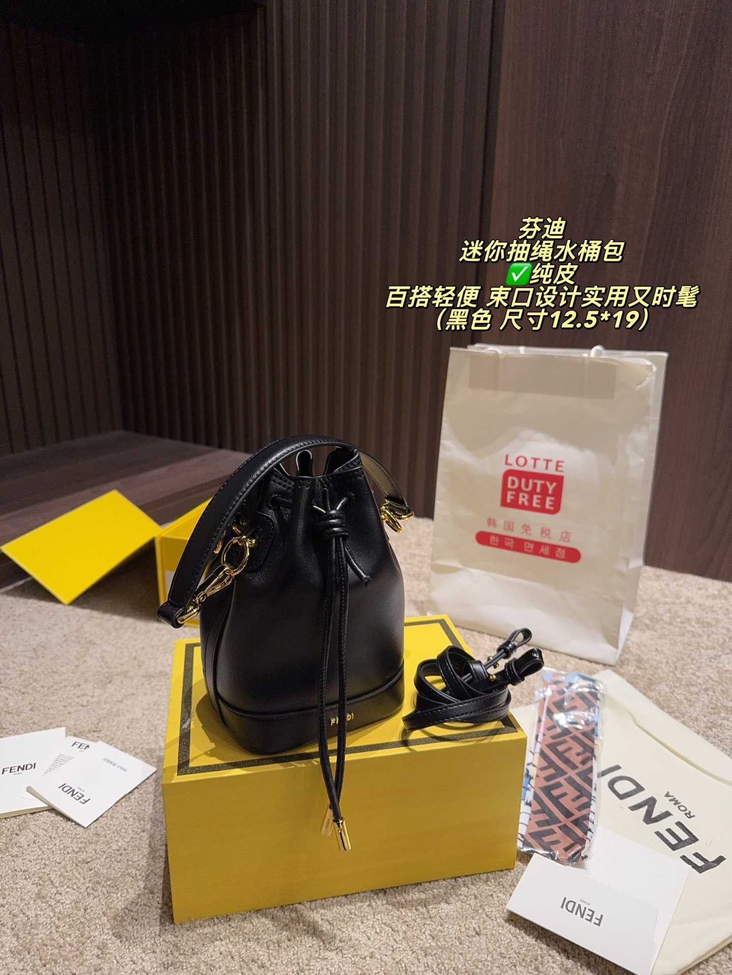 Fendi P155 12 19 OK Peekaboo Mini Bucket Bag. Material: Genuine leather. Style: Top handle, Crossbody, Bucket. Color: Black. Includes: Box. Size: 12.5 x 19 cm.