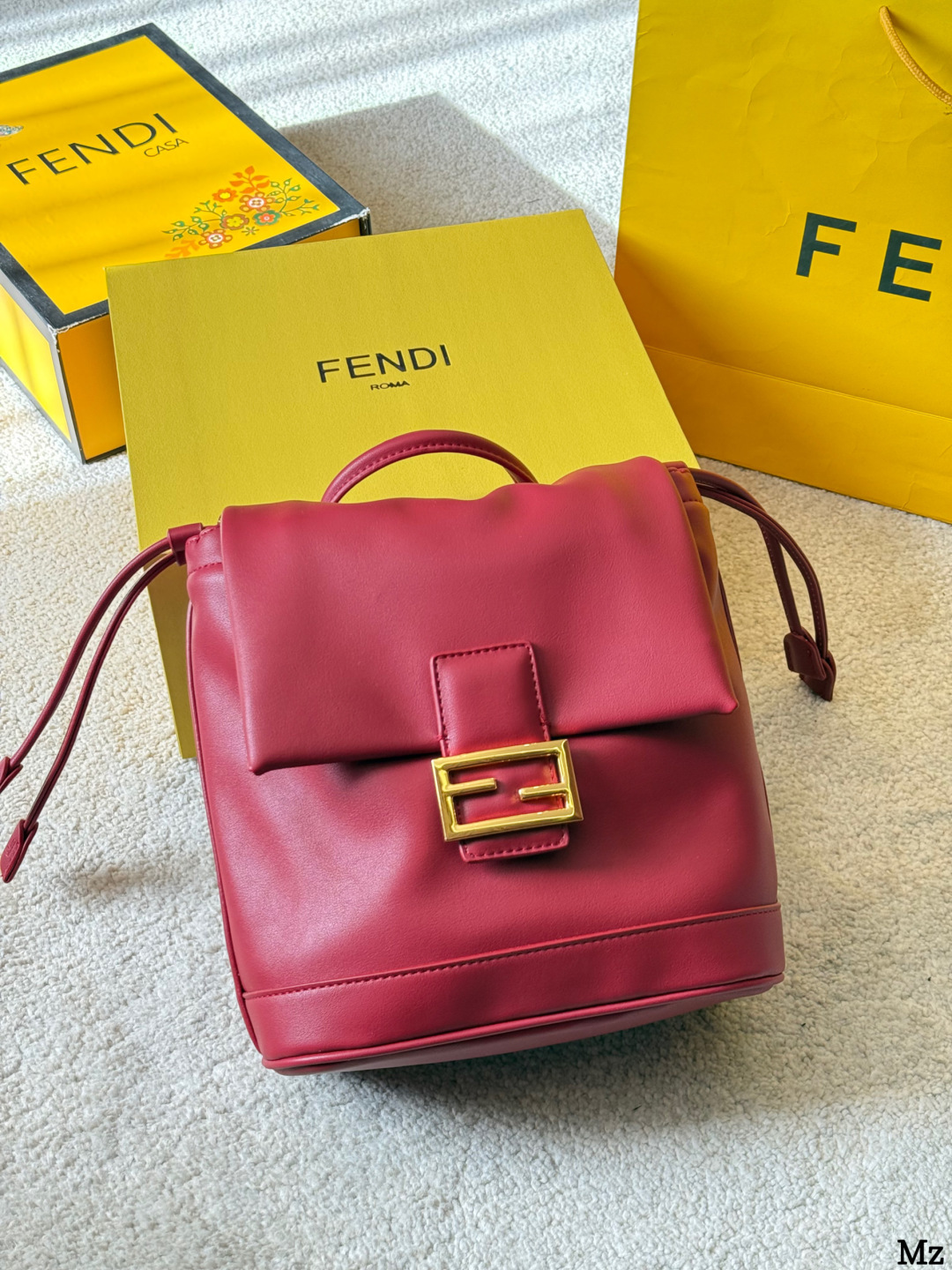 Fendi p180 FF OK x26x12cm Backpack. Material: Calfskin. Pattern: Monogram. Style: Backpack. Color: Brown. Size: 23 x 26 x 12 cm.