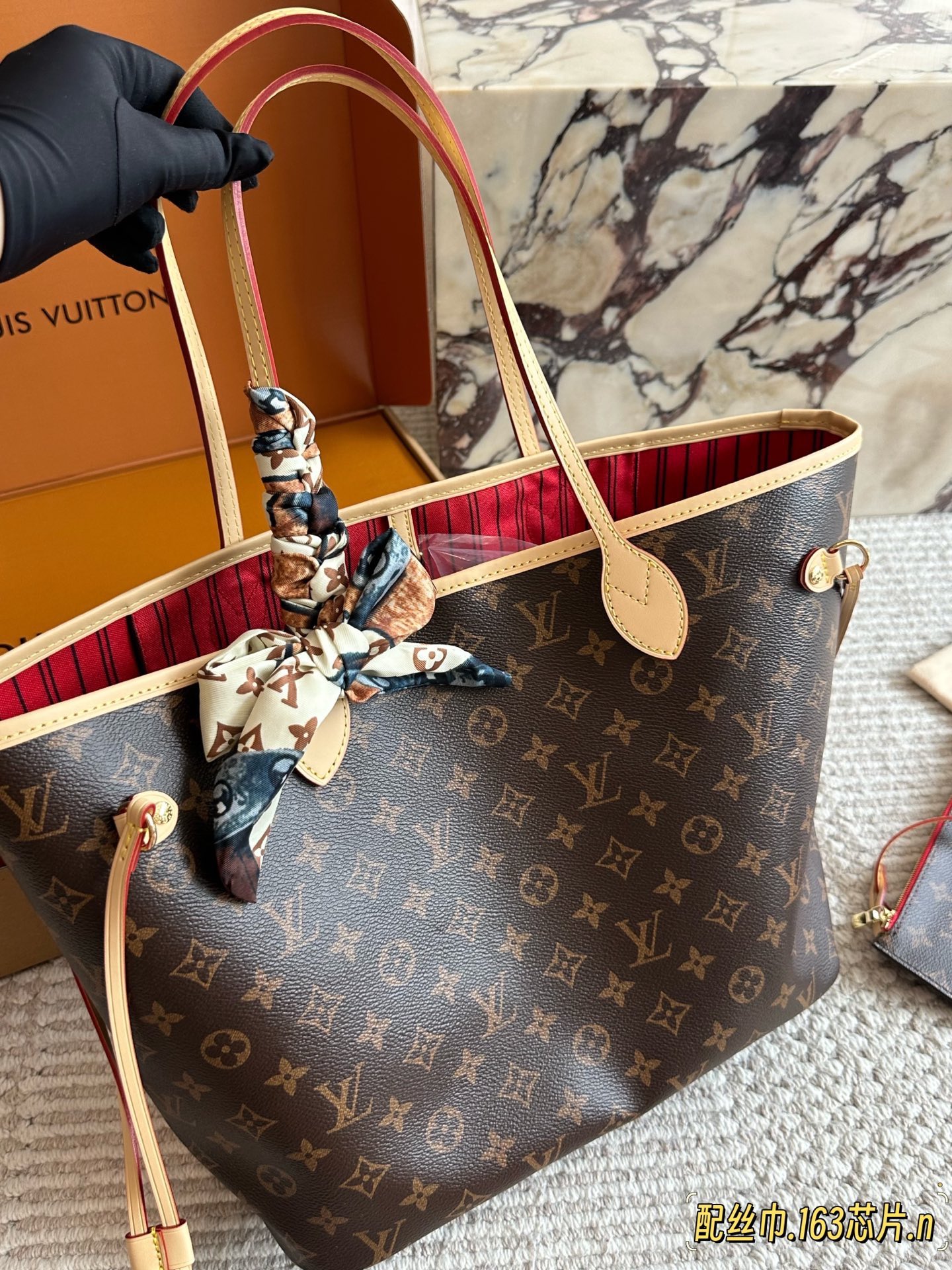 The Louis Vuitton Neverfull clutch showcases a timeless design with a subtle stripe pattern. This elegant accessory is perfect for carrying essentials in style. Its compact size makes it ideal for both day and evening use, adding a touch of sophistication to any outfit. Highlights: Stripe pattern; Includes box. Dimensions: 32 x 29 x 17 cm.