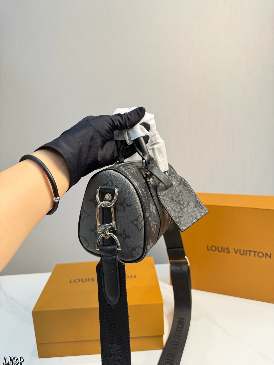 Louis Vuitton p115 Nigo Keepall Monogram 20 10 Handbag. Material: Calfskin. Hardware: Gold-tone hardware. Pattern: Monogram. Style: Top handle, Crossbody, Shoulder, Backpack, Clutch, Tote, Bucket. Color: Black. Condition: Brand new. Includes: Box, Shoulder strap. Size: 1.9 x 1.1 x 0.2 cm.
