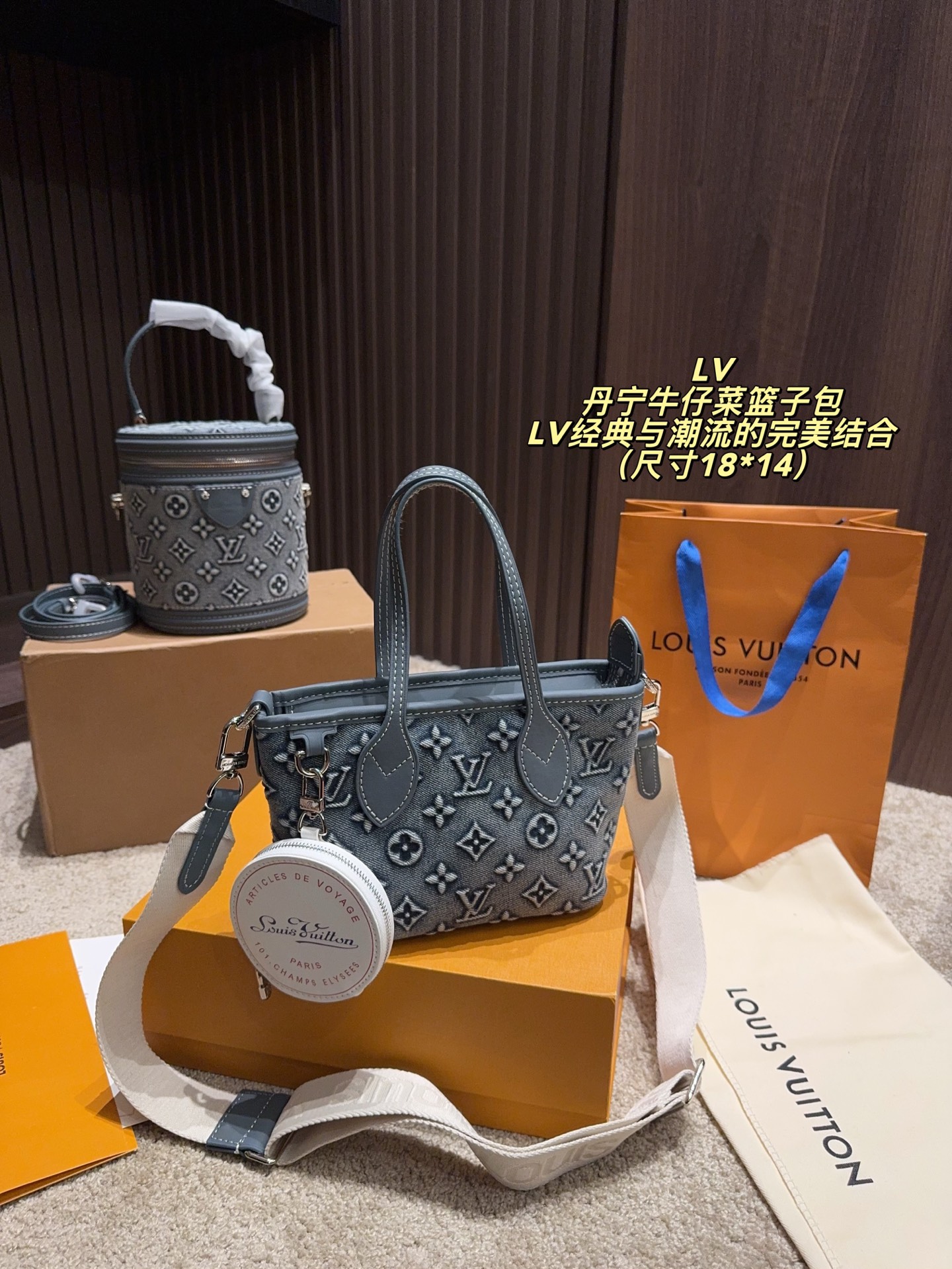 Louis Vuitton P165 18 14 Monogram OK Articles DE vovage Bag. Material: Denim. Pattern: Monogram. Style: Top handle, Crossbody. Color: Pink. Includes: Shoulder strap. Size: 18 x 14 cm.