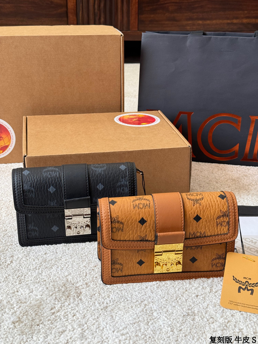 Luxury p135 MCM Tracy Visetos Vachetta OK Mini Bag. Material: Calfskin. Style: Crossbody, Shoulder. Includes: Shoulder strap. Size: 20 cm.