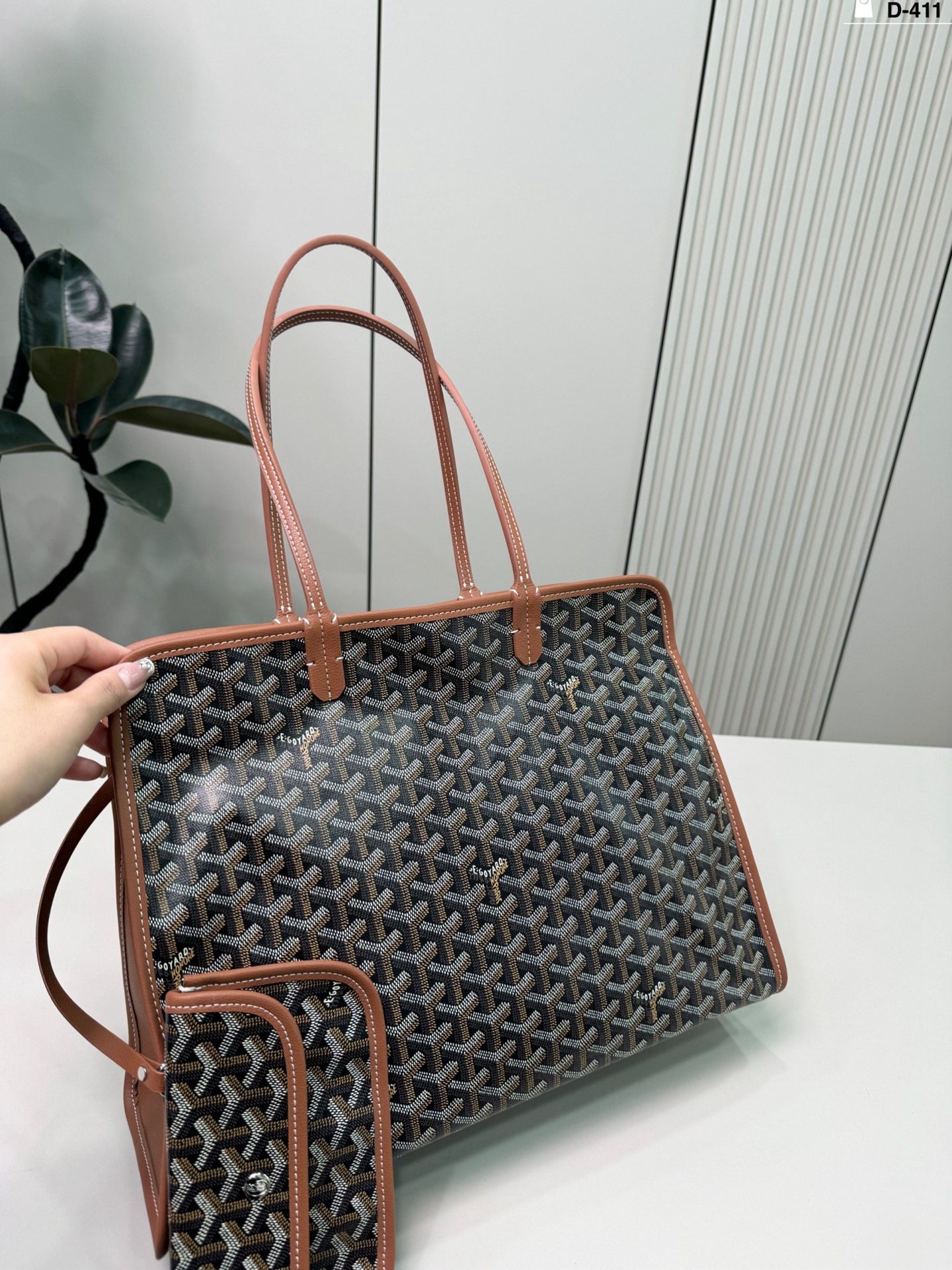Luxury p160 D-411 40 24 Goyard Hardy Tote Bag. Material: Calfskin. Hardware: Gold-tone hardware. Pattern: Monogram. Style: Top handle, Crossbody, Shoulder, Backpack, Clutch, Tote, Bucket. Color: Black. Condition: Brand new. Includes: Box, Shoulder strap. Size: 1.9 x 1.1 x 0.2 cm.
