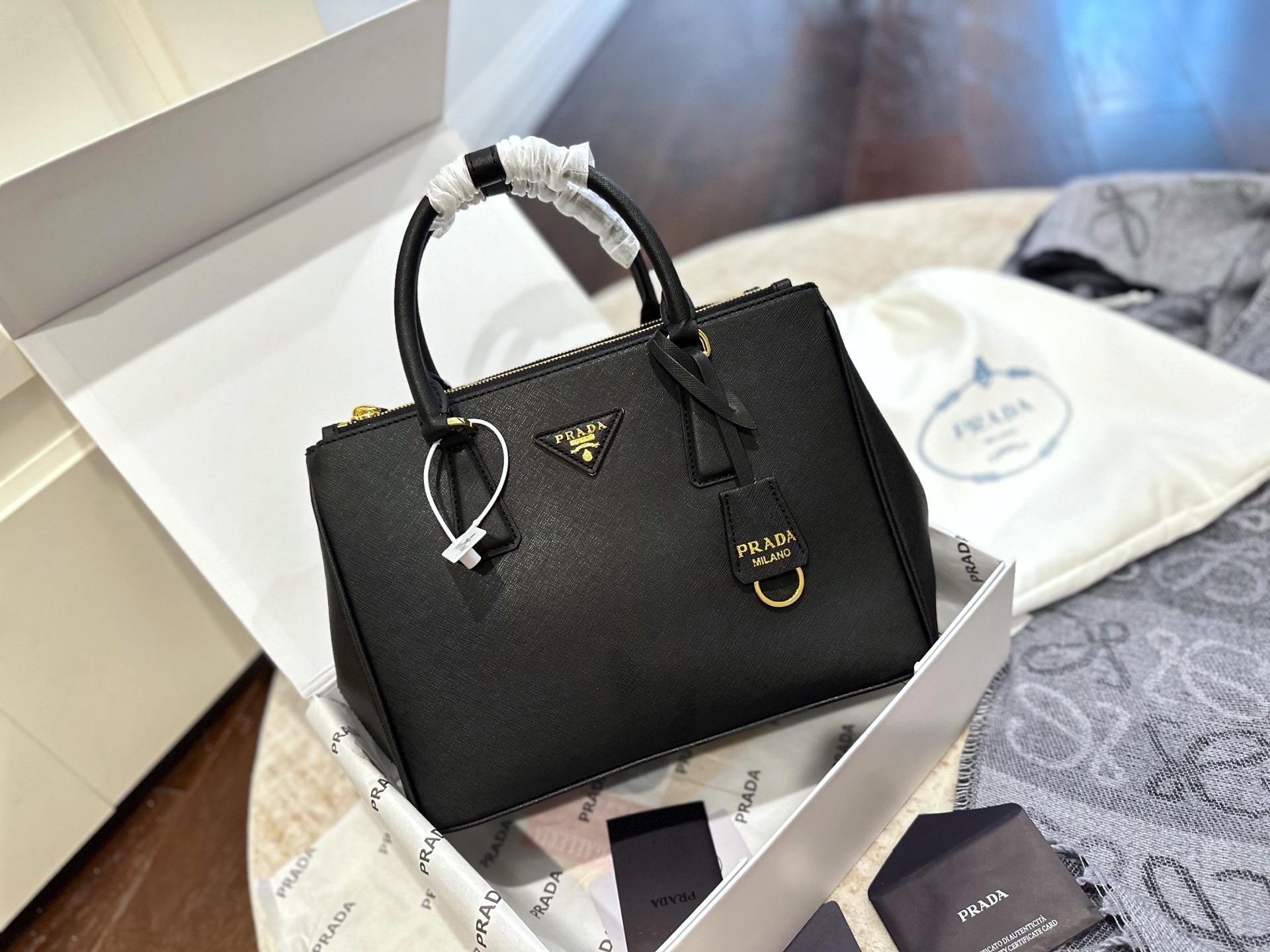 Luxury p190 MK Galleria CP PradaGalleria Clutch. Material: Calfskin. Hardware: Gold-tone hardware. Color: Black. Includes: Box. Size: 30 cm.
