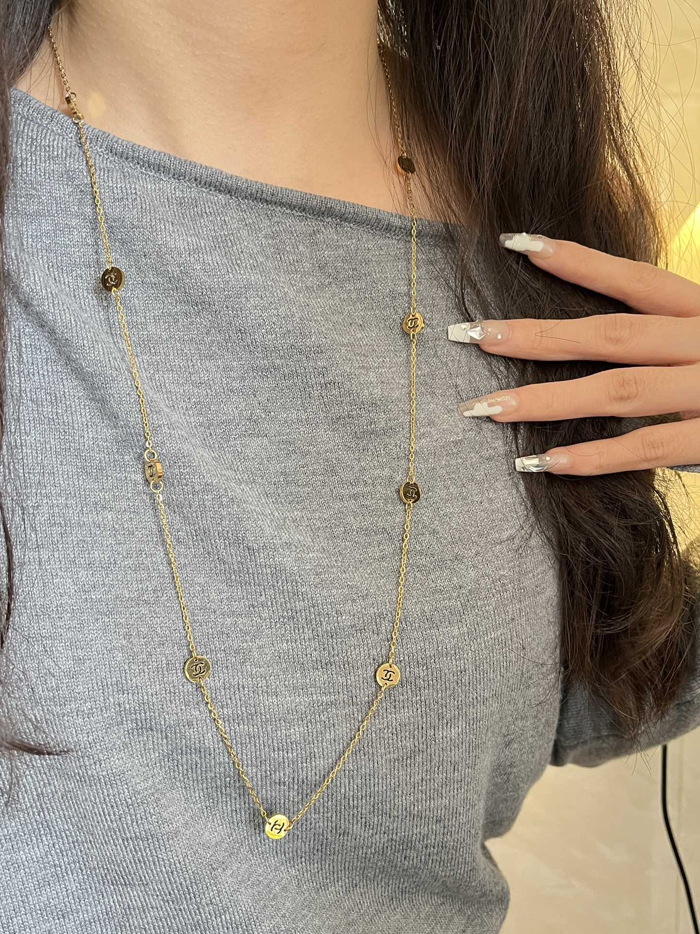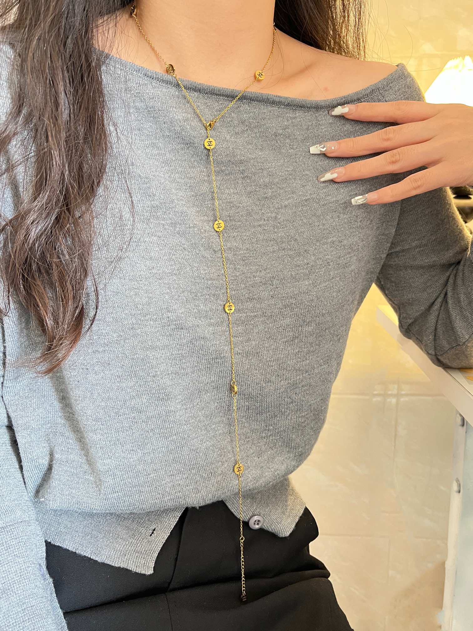 Designer X592 Necklace with a necklace silhouette.