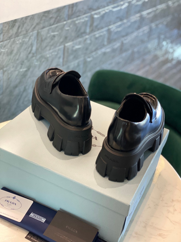 Prada brushed leather monolith loafers